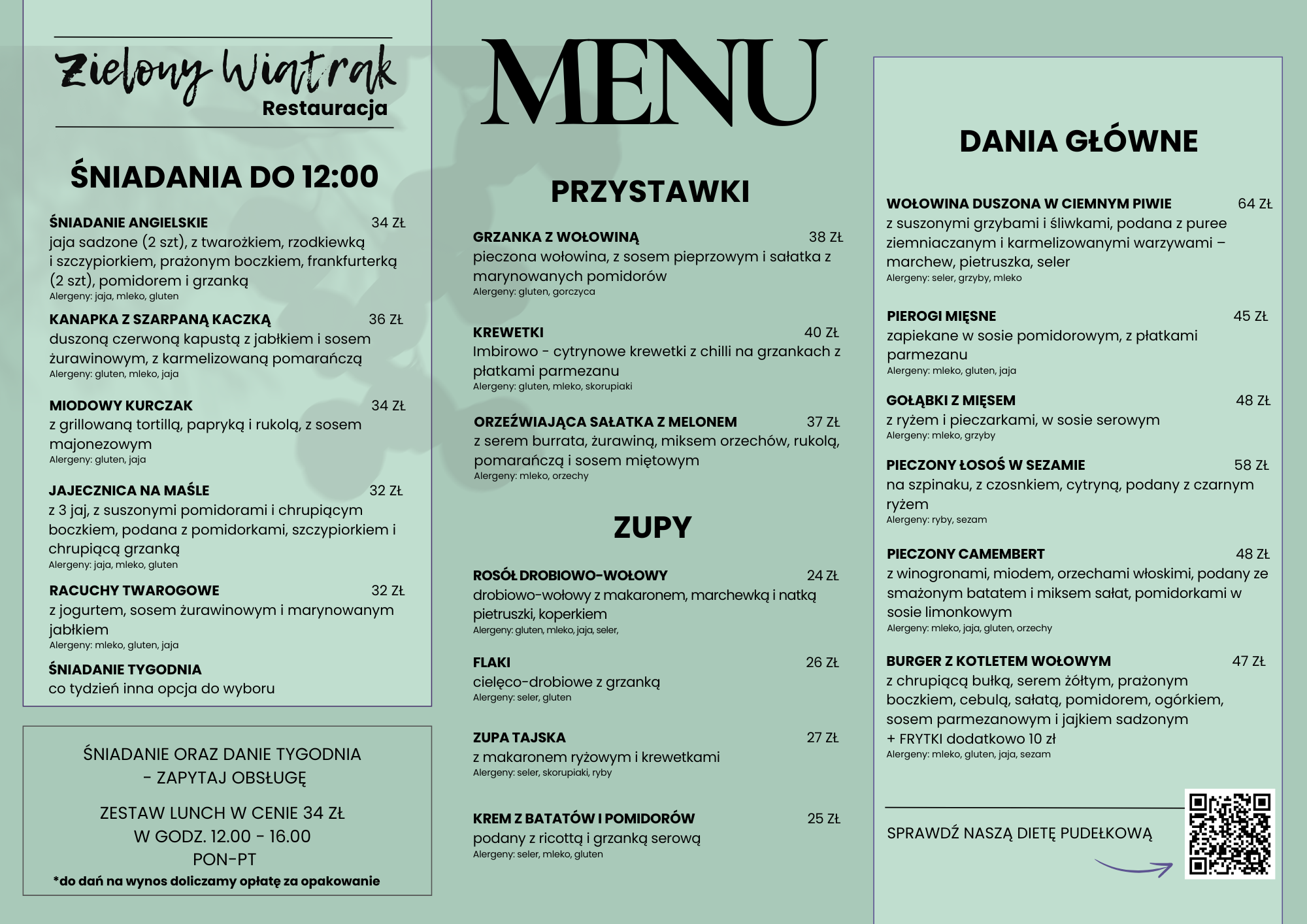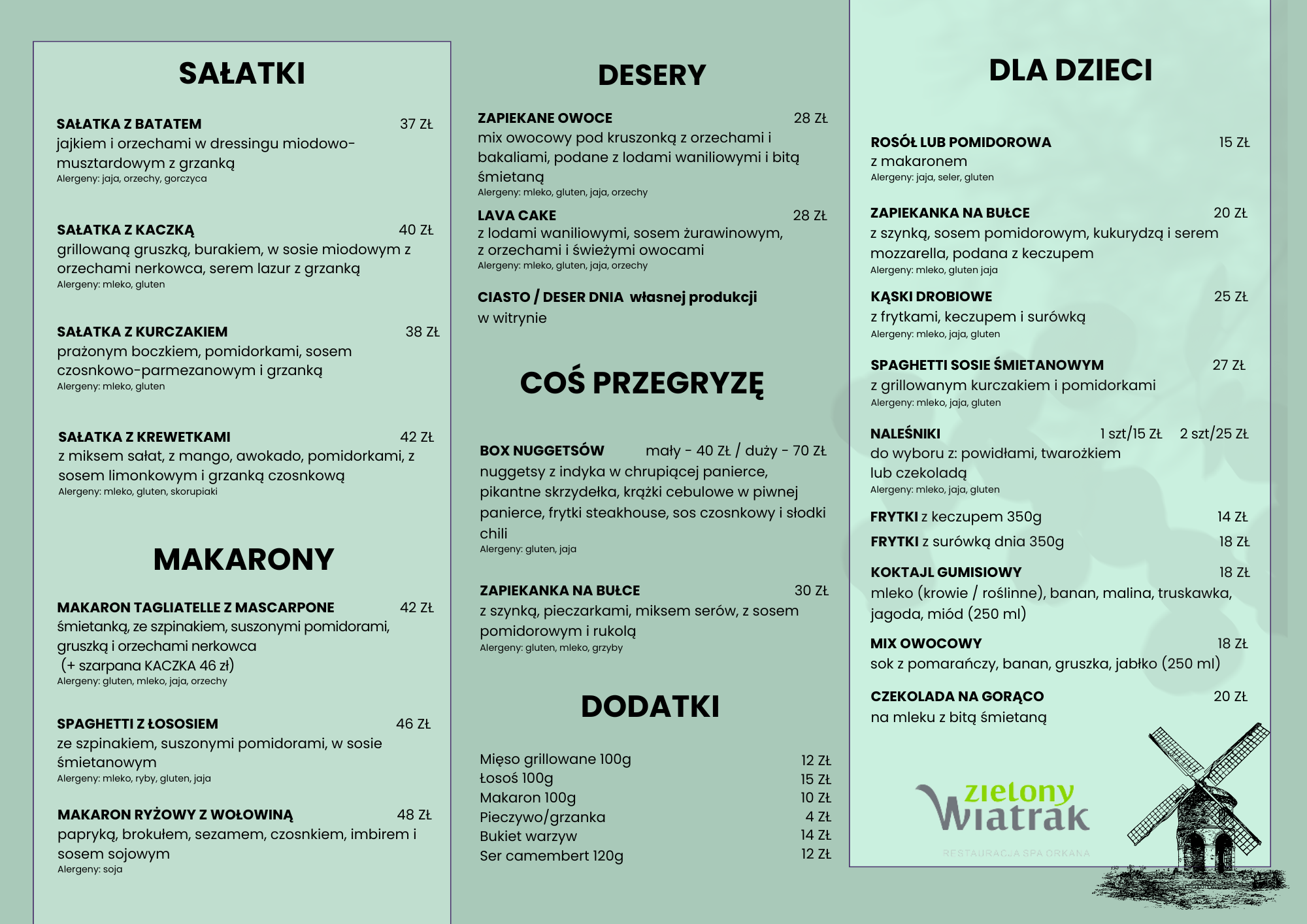Kuchnia przyjmuje zamówienia w godzinach 9:00 - 20.30